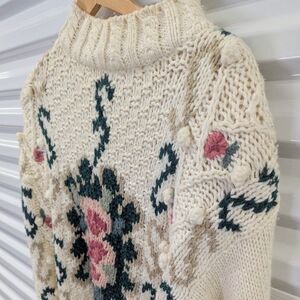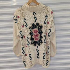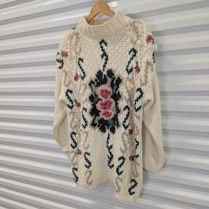 Vintage Shenanigans Oversized Hand Knitted Cream and Floral Tunic Sweater