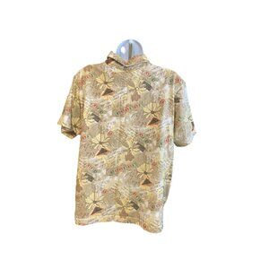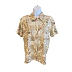 Vintage Shenanigans Womens Hawaiian Shirt Large Beige Button-Up Floral Beach