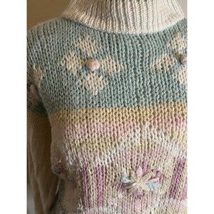 Shenanigans Knitted By Hand Vintage Knit multicolor graphic grandma sweater MED