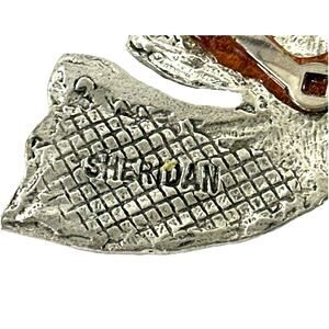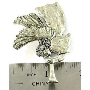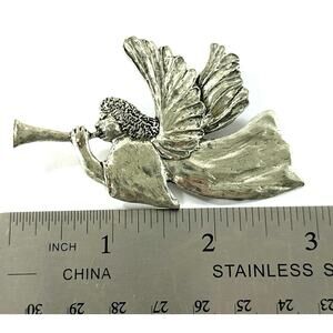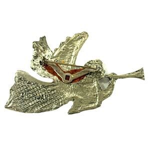 Vintage Sheridan Angel Brooch Pewter Silver Tone Trumpet Pin 2.75”