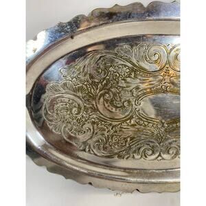 Vintage Sheridan Silver Co. Ornate Silverplate Oval Vanity Tray 9 3/4x 6