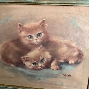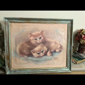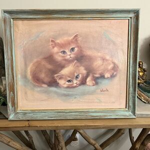 Vintage Sherle Museum kittens Print in chalk paint frame.