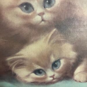 These Kittens. Just look at these cuties. Big Eye Style. Vintage used condition. Some minor flaws small tear Back just has grocery paper on back. You could hang w ribbon or add own anchor or just put on fireplace or shelf no hook needed. From smoke free home. Bundle and save.