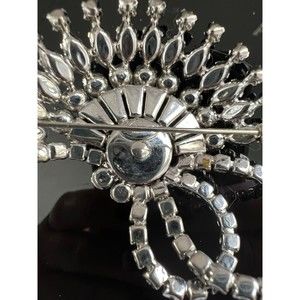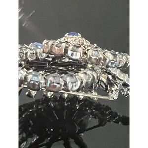 Signed early Sherman Vintage ultra high quality Blue and Clear Swarovski rhinestones tapered baguettes that capture the light and turn it into sparkling colors multilevel Brooch and matching Earrings that were converted from clip to pierced ( not signed) .