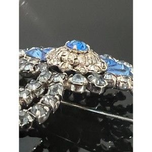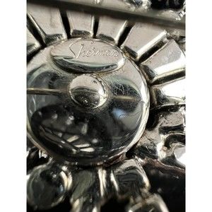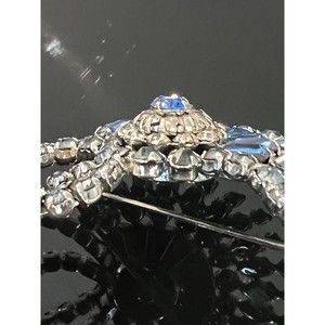 Vintage Sherman Brooch Earrings Dome Signed Blue Rhinestones Crystal Swarovski