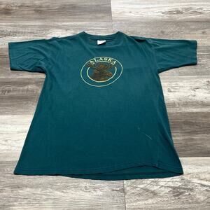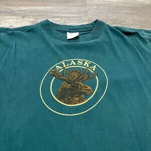 Vintage Sherry Alaska Moose Head Teal Green Brown Yellow Mens Large Destination Graphic Tee