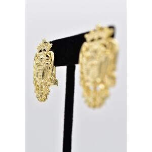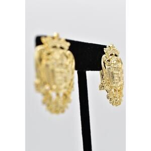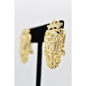 Vintage Shield Crown Clip On Earrings Gold Chunky Shiny Bright NOS 1980s BinAE