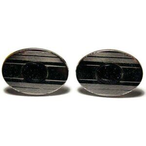 Vintage Shields Purple Silver Tone Etched Oval Cufflinks Tux Shirt Dress Suit