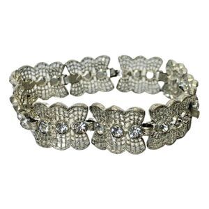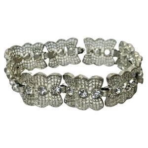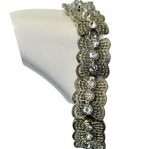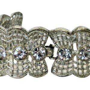 Vintage Shimmer Crystal Silver Tone Lace Webbed Metal Chain Link Bracelet 7.5”