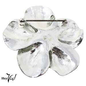 Vintage Shimmer Green Curvy Metal Flower Pin Brooch w Rhinestones 2.25"- Hey Viv