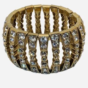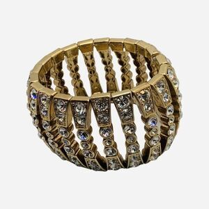 Vintage Shimmering Clear Rhinestone Sparkly Gold Tone Formal Stretch Bracelet