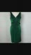 Vintage sleeveless v-neck wiggle dress with attached panel that wraps back to form belt. In a shimmery green and black knit fabric. There is some stretch. No makers label or size tag, but does have ILGWU tag.