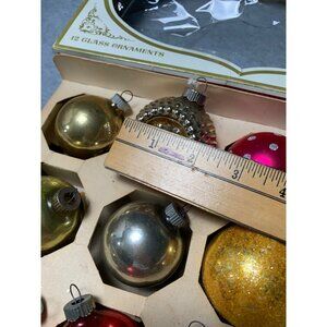 Vintage Shiny Brite 12 Glass Christmas Ornaments Gold Red Blue Silver Polka Dots