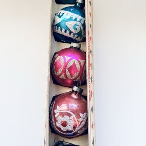 Vintage Shiny Brite 5 Pack Mercury Glass Christmas Tree Ornaments Original Box