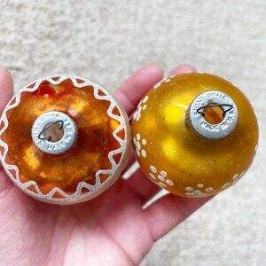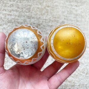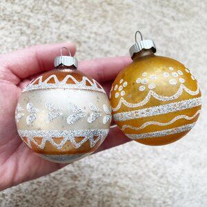 Vintage Shiny Brite Pair 2 Mercury Glass Christmas Ornaments Balls Gold Glitter