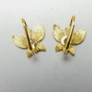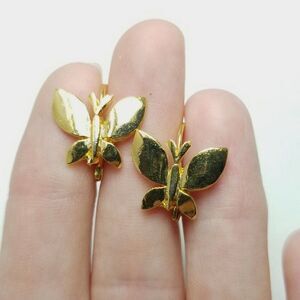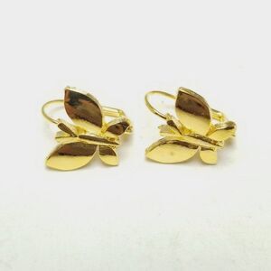 Vintage Shiny Butterfly Earrings, Gold Tone Insect Bug, Nice Size, Estate