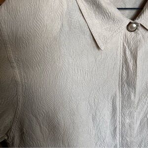 Vintage Ship N Shore 100% Silk Cream Leaf Printed Cream Button Up Long Sleeve Size 16