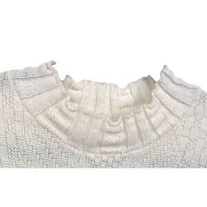 Vintage Ship'N Shore Mock Lettuce Neck Cream Geometric Knit Oversize Sweater