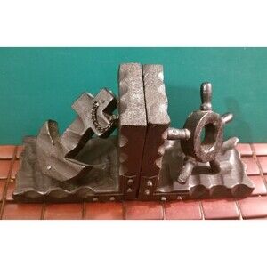 Vintage Ship's Wheel & Anchor Bookends Mid Century Nautical Pirate Decor