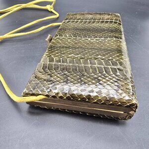 Vintage Shirl Miller Snake Skin Clutch Purse Gold Frame Leather Strap HS 119