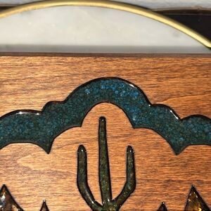 Vintage Shirlbud Southwestern Keepsake Wood Box Trinkets Inlaid Turquoise Stones