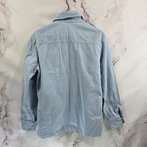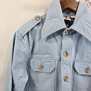 Vintage Shirt Jacket Womens Large Light Blue Shacket 70s Wood Button Velvet