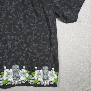 Vintage Shirt Mens Large Black Floral Baggy Loose Xtreme Gear Y2K Skulls NWT