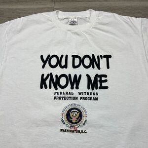 Vintage Shirt Mens Large White Funny You Dont Know Me Witness Protection 90s