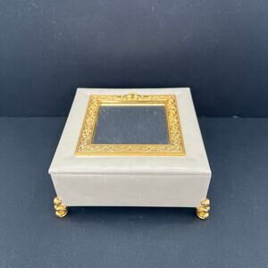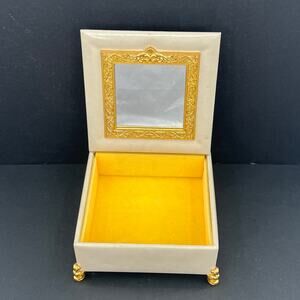 Vintage Shiseido vegan leather and metal golden trim box and rotating mirror