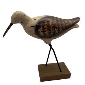 Vintage Shorebird 10"x9.5" Rustic Handcrafted Painted Wooden Sculpture Metal Legs Folk Art Unique Gift Grandpacore