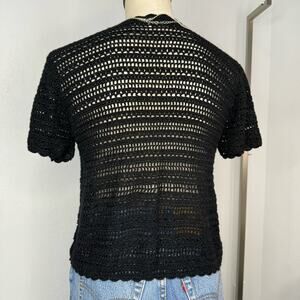 Vintage Short Sleeve Black Open Knit Cardigan Size Medium, some loose loops