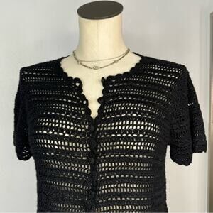 Vintage Short Sleeve Black Open Knit Cardigan Christopher & Banks Size Medium
