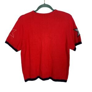 This vintage cardigan is in excellent condition and ready for a new home. The vibrant red color and unique star details make it a standout piece that will add personality to any outfit. Whether you're dressing up or keeping it casual, this cardigan is a versatile and stylish choice. Perfect for the 4th of July!