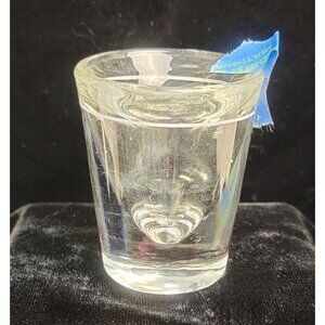 Vintage Shot Glass. Crafted from nicely weighted heavy glass. Approximate measurements: 2.5 in x 1.75 in x 1.75 in. Please see the provided photos for further details.