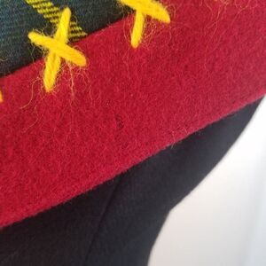 This Wool Jacket Features Big Plaid Shawl Collar With Red Felt Trim.