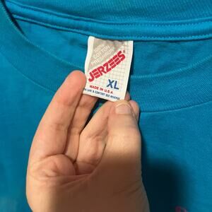 Dive into vintage Las Vegas flair with this bright turquoise XL tee from the now-closed Showboat Hotel & Casino — a graphic shout-out to the “Super Star Bingo” nights where “I Played $125,000” lit up the back. Made in USA by Jerzees, 100% preshrunk cotton, tagged as XL, labeled from an era before oversized became the norm. Measurements available on request. Excellent vintage condition with minor wear but the bold print still pops.