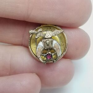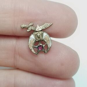 Vintage Shriners Gold Tone Lapel Pin Enamel Pink Rhinestone, Men's Masonic