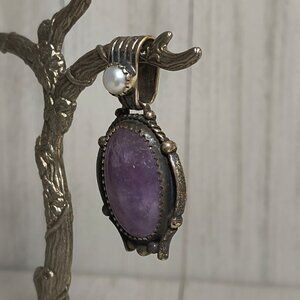 Vintage Shube Dakota West Amethyst & Pearl Sterling Silver Pendant – Signed