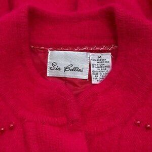 Vintage Sia Bellini Pink Floral Beaded Rabbit Hair Wool Blend Cardigan Luxury M