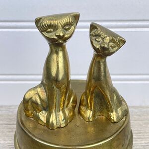 Beautiful brass music box adorned with two Siamese cats. plays a lovely version of It’s a Small World. Base will unscrew from bottom of music box.