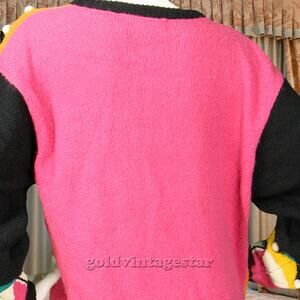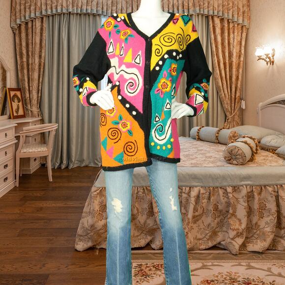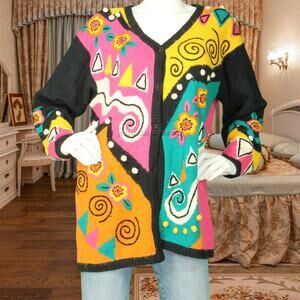 Vintage Sideeffects Colorful Bright Loud Rainbow Abstract Art Knit Cardigan Sweater Jumper M