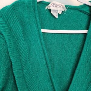 Vintage Sideffects Sweater Size M Green Pearl Buttons Balloon Sleeve Deep Neck
