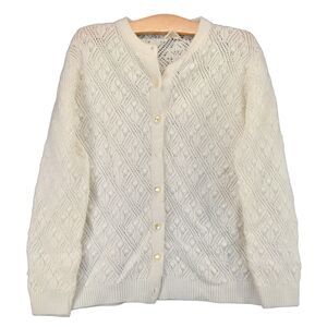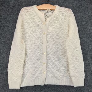 Vintage Sidney Gould Button Front Cardigan Sweater Womens Size L White Made USA