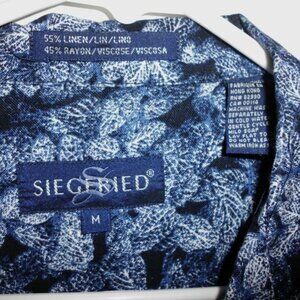Vintage Siegfried Button Up Shirt Linen-Blend Short Sleeve Blue M Men Hong Kong