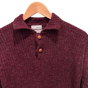 Vintage Sienna Men's 100% Wool Burgundy 2 Button Sweater Cable Knit Size M