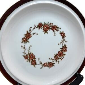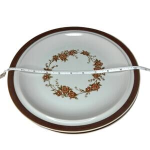 Beautiful vintage plates with a brown rim and a circle of flowers in the center.