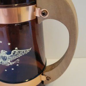 Vintage Siesta Ware Eagle Mug Amber Glass with Wood Handle, Beer Stein Glass