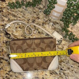 Vintage Signature C Coach Chic Brown and Cream Leather Patterned Wristlet