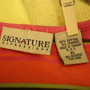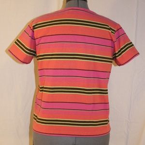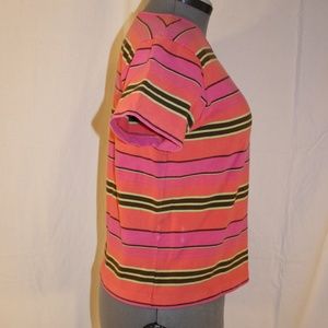 Hot Pink, Coral, Lime Green, Brown Striped Short Sleeve Shirt by Signature Expressions