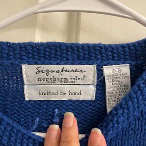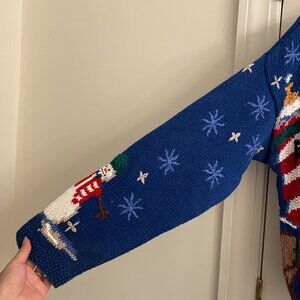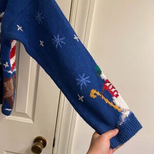 Vintage Signatures by Northern Isles Blue Santa Snowman Ugly Christmas Cardigan